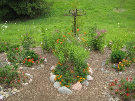 This garden is located along the SE corner of the small Pond along Windsor Road. This garden has been fenced to keep the rabbits from destroying the plant material. Please feel free to enter the garden gate and view the variety of plant material which will help sustain a habitat for our beautiful butterfly population. Maggie has a listing of the plant material. She is willing to give a tour for your small group.