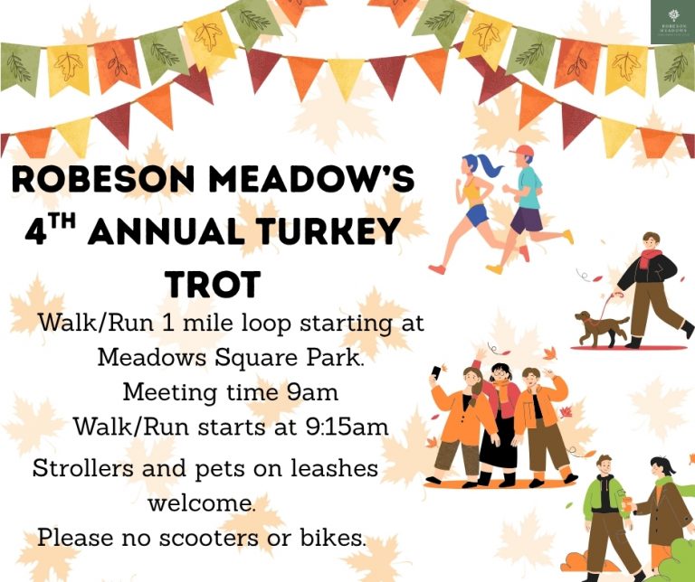 Robeson Meadows Neighbors! The 4th Annual Turkey Trot is upon us!!Come and join us again on Thanksgiving morning (November 27th)…